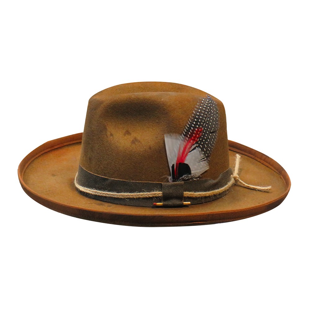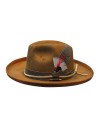 Cappello di feltro lana, ala 6 cm circa, altezza calotta frontale 10 cm circa, cinturino in pelle con laccio in canapa e piuma colorata, maltinto a mano, tergisudore regolabile "Made in Italy" - Vendita Online