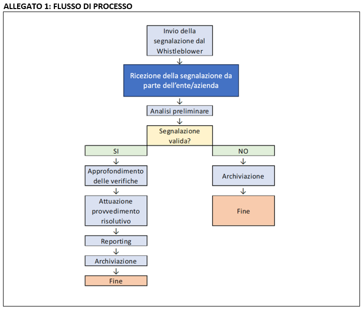 Stesso fine ha il DECRETO LEGISLATIVO 10 marzo 2023, n. 24 in attuazione della direttiva (UE) 2019/1937 del Parlamento europeo e del Consiglio, del 23 ottobre 2019, riguardante la protezione delle persone che segnalano violazioni del diritto dell'Unione e recante disposizioni riguardanti la protezione delle persone che segnalano violazioni delle disposizioni normative nazionali.